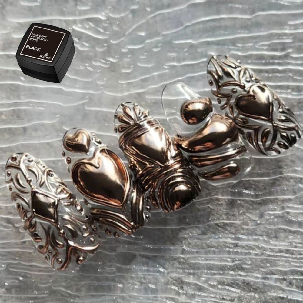The KOKOIST non-wipe accessory bond securely attaches stones and gems to the gel. As it's a non-wipe gel, chrome powder can be directly applied, making it ideal for intricate chrome powder art with fine details.