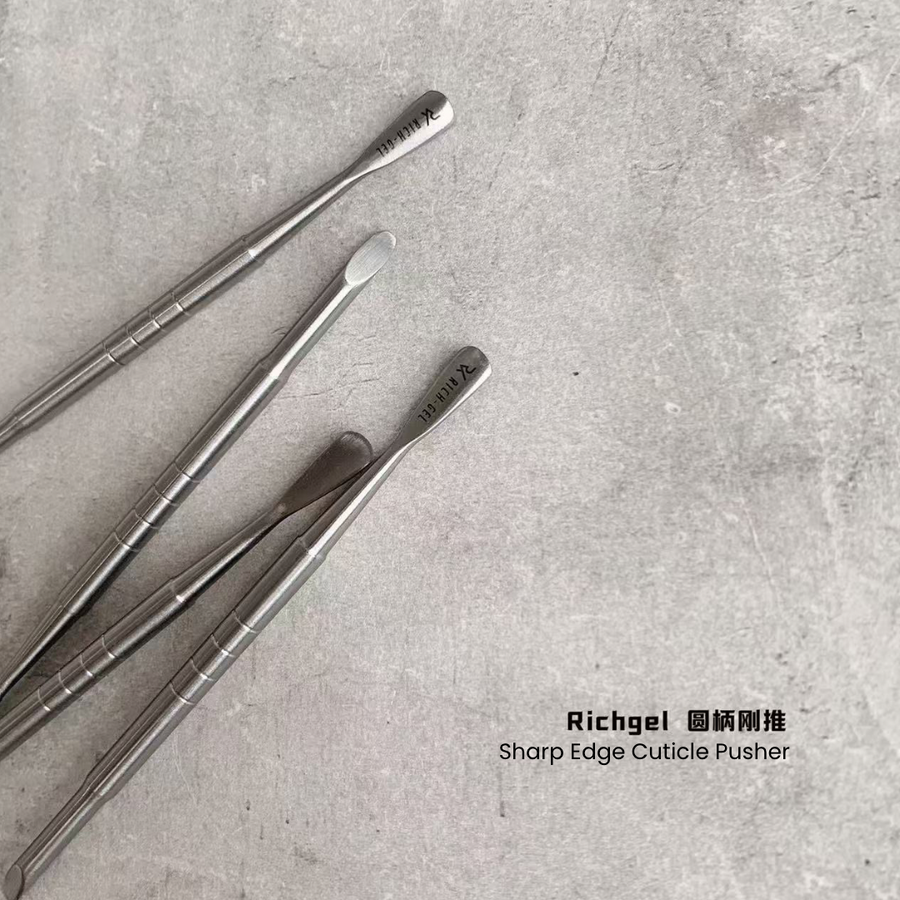 The Rich Gel – Sharp Edge Cuticle Pusher features a dual-ended design with fan-shaped, rounded edges that are specially designed to precisely push back dead skin and gently open the cuticle pocket. The thin, low-profile tips glide smoothly without scratching the nail surface, making it safe and easy to use for all levels—from beginners to professionals.