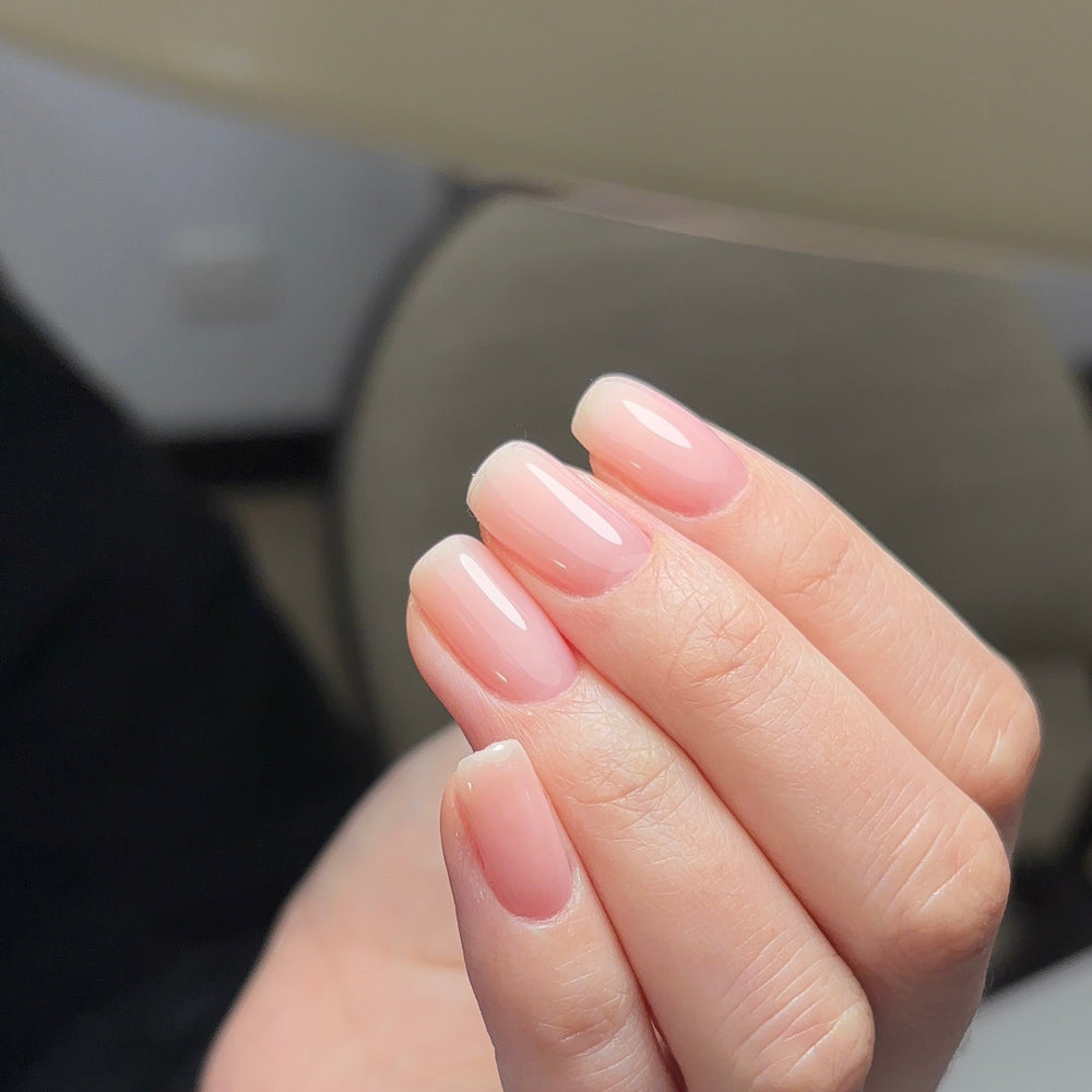 Think of this tinted base coat as a subtle color mix between the fan favorites Peach Base and Strawberry Milk Base. It’s less opaque than those two but has the perfect mix of hue between them. It’s a subtle peachy pink hue tinted base gel where if you build it up on the nail, it still has a slight sheer aspect to it. Think of Baby Cakes Base as exactly Sugar Glaze Base but with NO shimmer for the clients that don’t like glitter on their nails.
