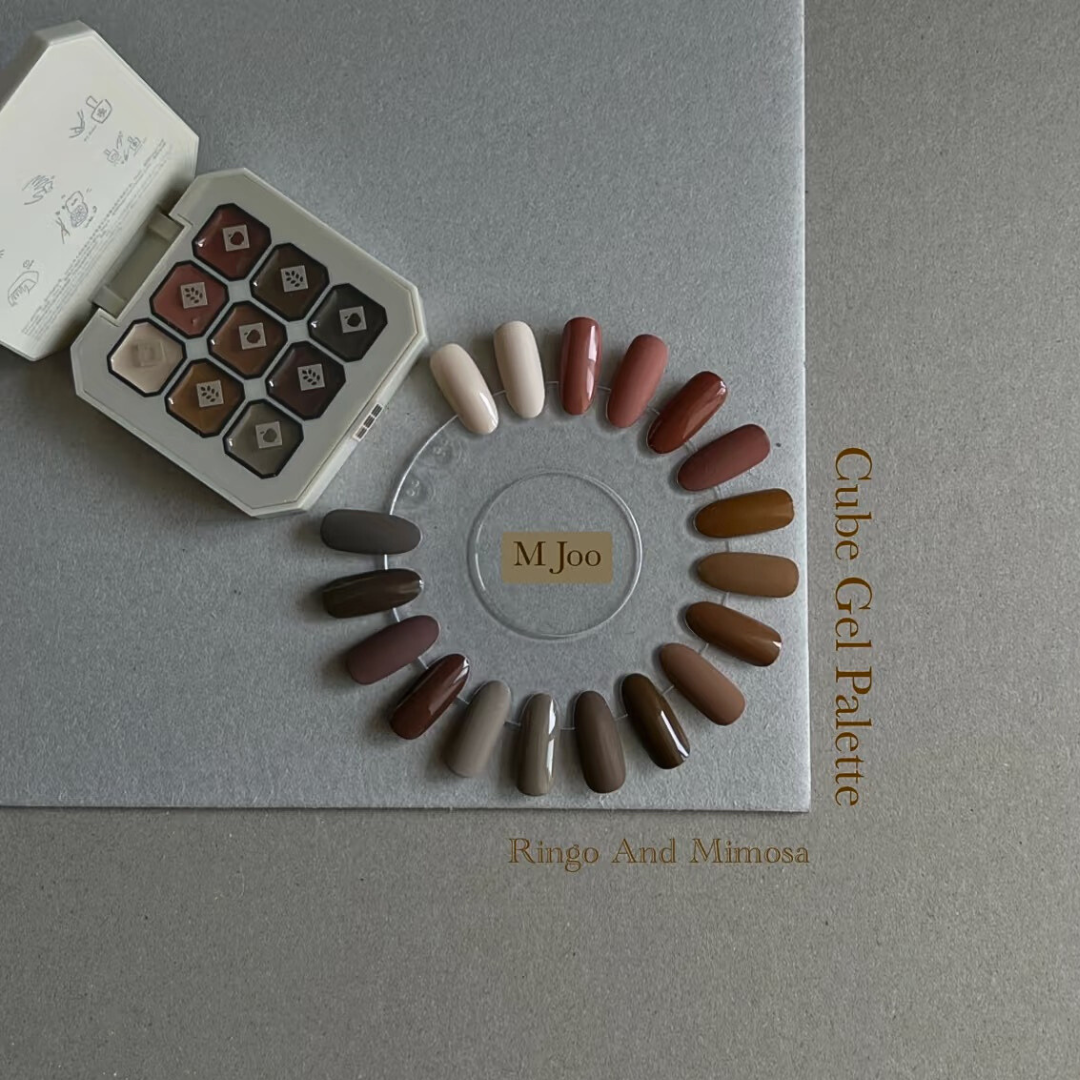 The name is a blend of their inspirations: “Ringo” (apple) for quiet, complex tones from the Japanese, and “Mimosa” (the shy flower) for dreamy creativity. Together, they bring you gel products that are original, thoughtful, and full of personality — from silky Japanese-style colours to playful palette designs.