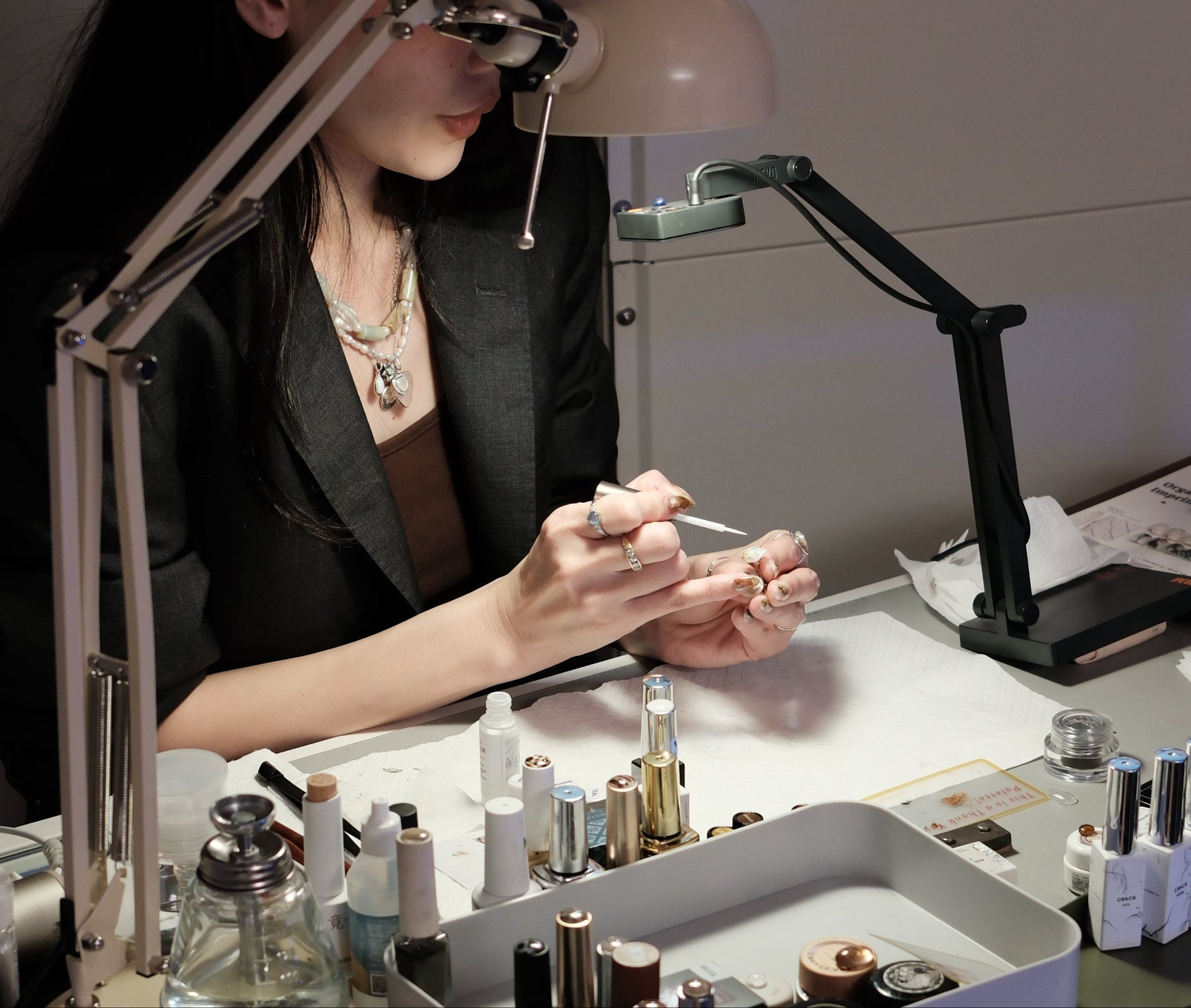 Inspired by minerals, stone, and natural luminosity, this workshop focuses on creating nail art with soft layers, cloudy depth, and gentle light reflection.